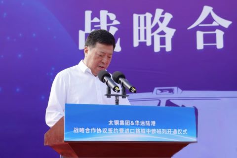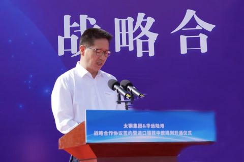 太鋼集團(tuán)黨委書記、董事長(zhǎng)吳小弟代表太鋼向?yàn)榘嗔虚_通提供鼎力支持的省市單位、路局、海關(guān)、銀行,特別是華遠(yuǎn)陸港的領(lǐng)導(dǎo)和同仁們表示衷心感謝。